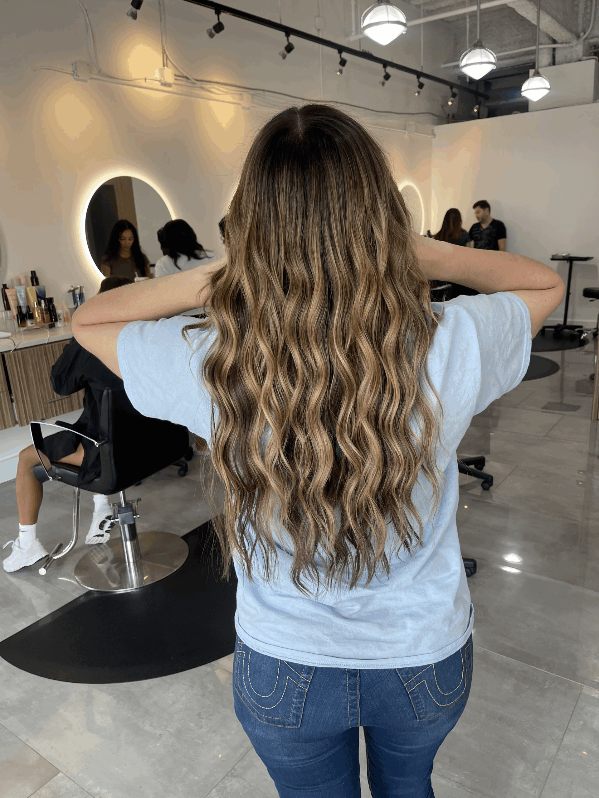 I’ve received countless compliments on how beautiful my hair looks, and no one can ever tell that I’m wearing extensions. The blend is seamless, the quality is amazing, and the care he takes with my natural hair really shows.